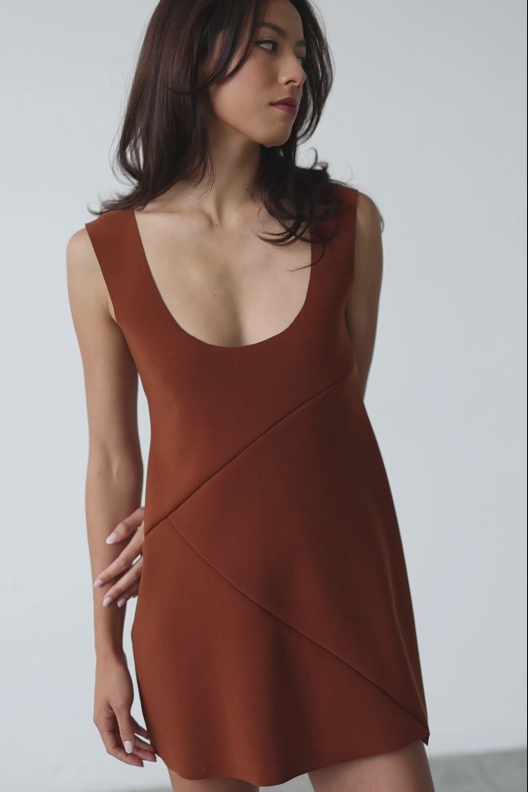 Introducing the ultimate mini dress – simple, easy to wear, and the perfect colour for any season. The Raw Edge Mini Dress has a reversible option, a scooped neck, and wide shoulder straps.