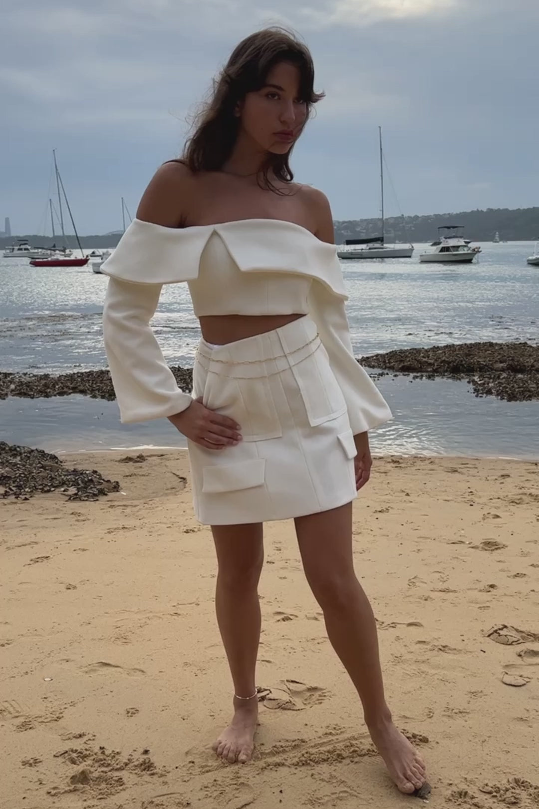 Made with our structured heavyweight crepe, creating a playful yet so simple everyday wear garment. Features a mini cut and raw edge finish, concealed invisible zipper and flattering A-line skirt.