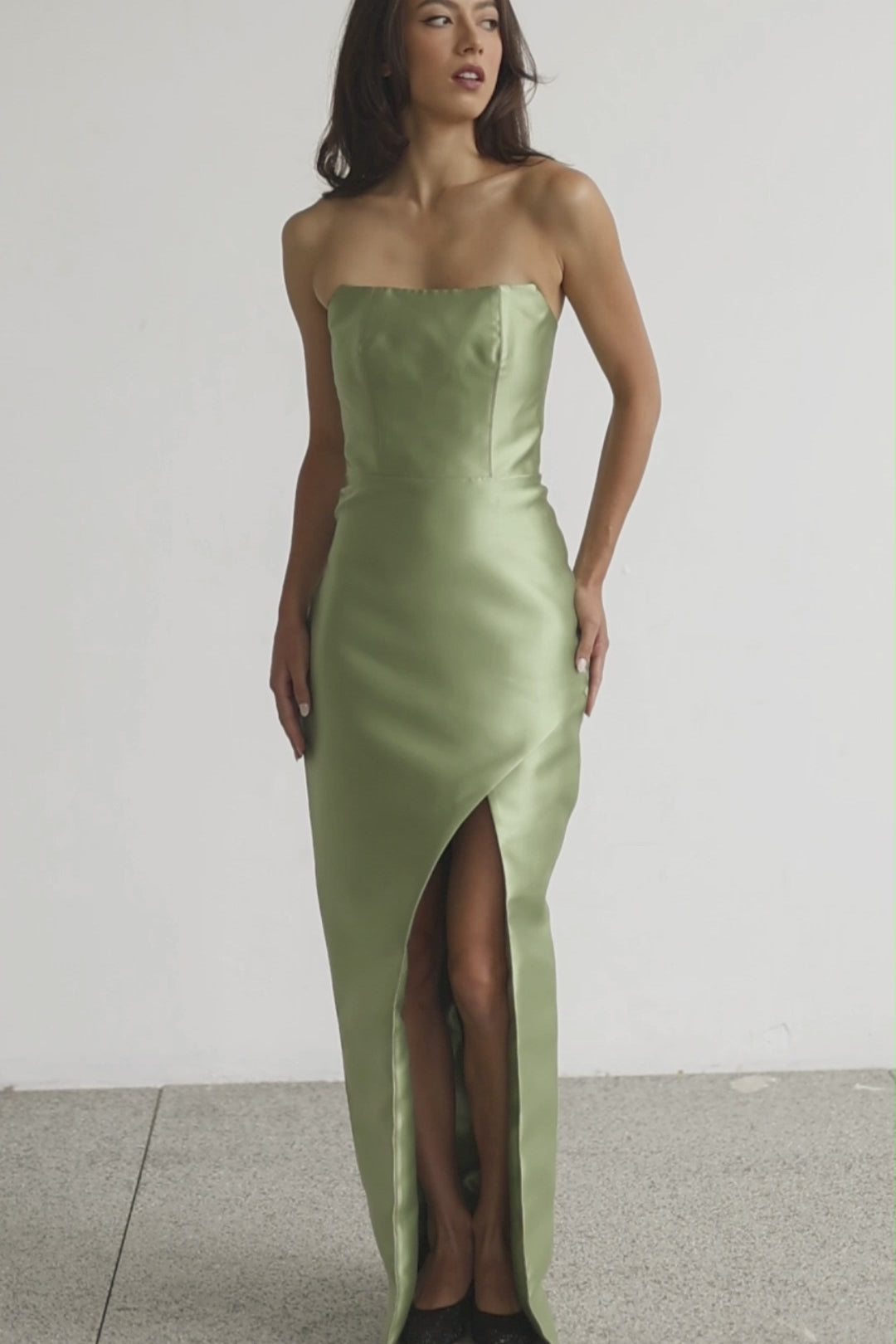Creating an edge with a gentle touch, the Nebula Gown is flawless for any black tie affair. Constructed from heavily weighted satin, it shapes any silhouette.